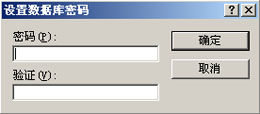 在这个对话框中要我们在第一个文本框中要我们输入数据库密码,并在第二个文本框中再输入一遍刚才输入的密码,以保证我们输入的密码不会因为误输造成我们以后无法打开自己的数据库。将这些完成以后,就单击确定按钮。