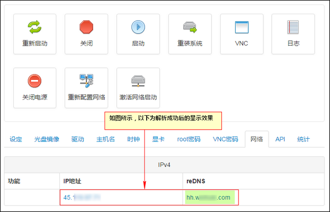 第一步:登录云服务器控制面板,按图所示依次选择 网络-reDNS-编辑,打开编辑窗口。