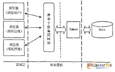 从业务逻辑上来讲,神华宁煤集团网站由表现层、业务逻辑层和数据层三层构建组成。该系统按照三层体系结构具体对应的逻辑关系如图2所示: