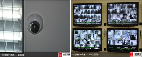 机房内设有多处视频监控点,摄像机按机柜排列列数布置,并覆盖机房内外所有通道及设备。保证机房区域内没有监控盲点,并采用动态侦测录像,进行7*24小时的实时监控并保存三个月以上的录像资料。