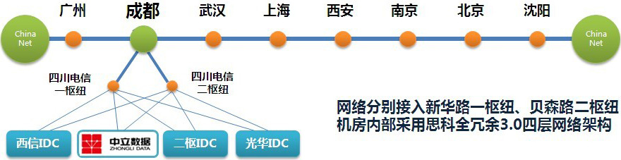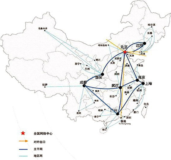 由北京、上海、广州、沈阳、南京、武汉、成都、西安8个城市的核心节点组成;