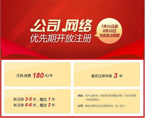 .公司 .网络优先期开放注册