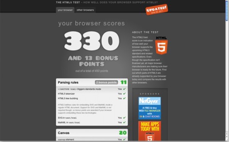 目前,各个浏览器对HTML 5的支持程度不尽相同,使用HTML5 Test,它将告诉你不同浏览器对HTML 5的一些标签的支持情况,比如video、audio、canvas等等。
