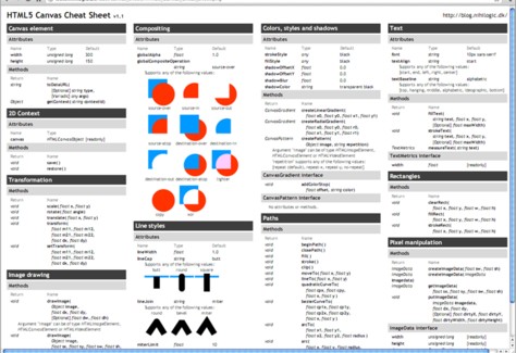 毫无疑问,Canvas是HTML 5非常重要的元素之一,使用HTML5 Canvas cheat sheet,它可以帮助你查看Canvas元素的详细信息。