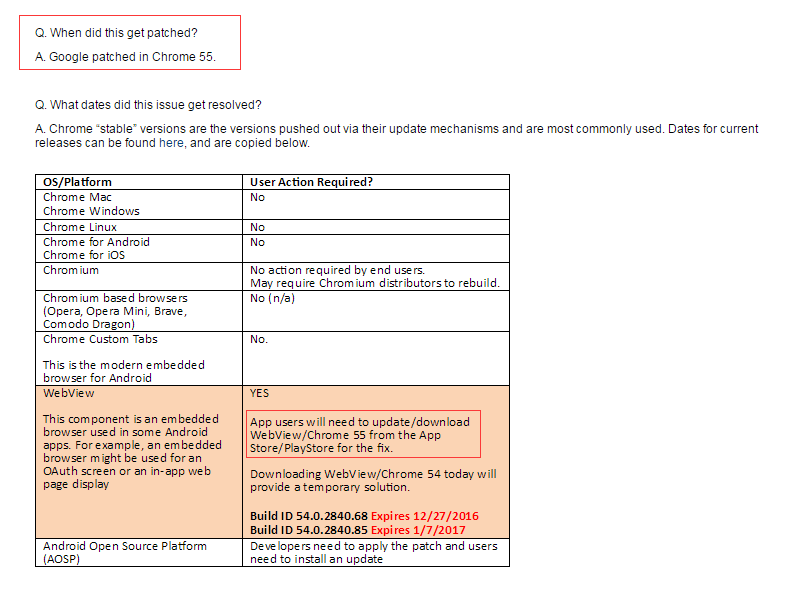 该CT错误经确认是chrome浏览器53、54版本的内核问题,该 BUG 导致与 Symantec CA机构颁发的SSL证书出现不兼容问题,Symantec CA机构所有2016年6月1日之后的证书都会被此问题影响出现CT错误的情况,Chrome方面在第一时间通过自动补丁方式处理了此问题,并在55版本修复此问题。