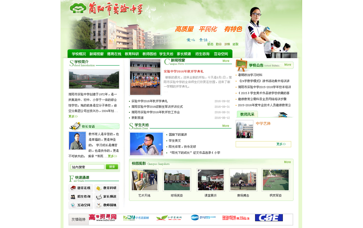 简阳市实验中学是四川空分设备(集团)有限责任公司出资兴办,集小学、初中、高中于一体的综合性学校,学校始建于1972年。2004年6月移交地方政府后成为市教育局直属的高完中学校。