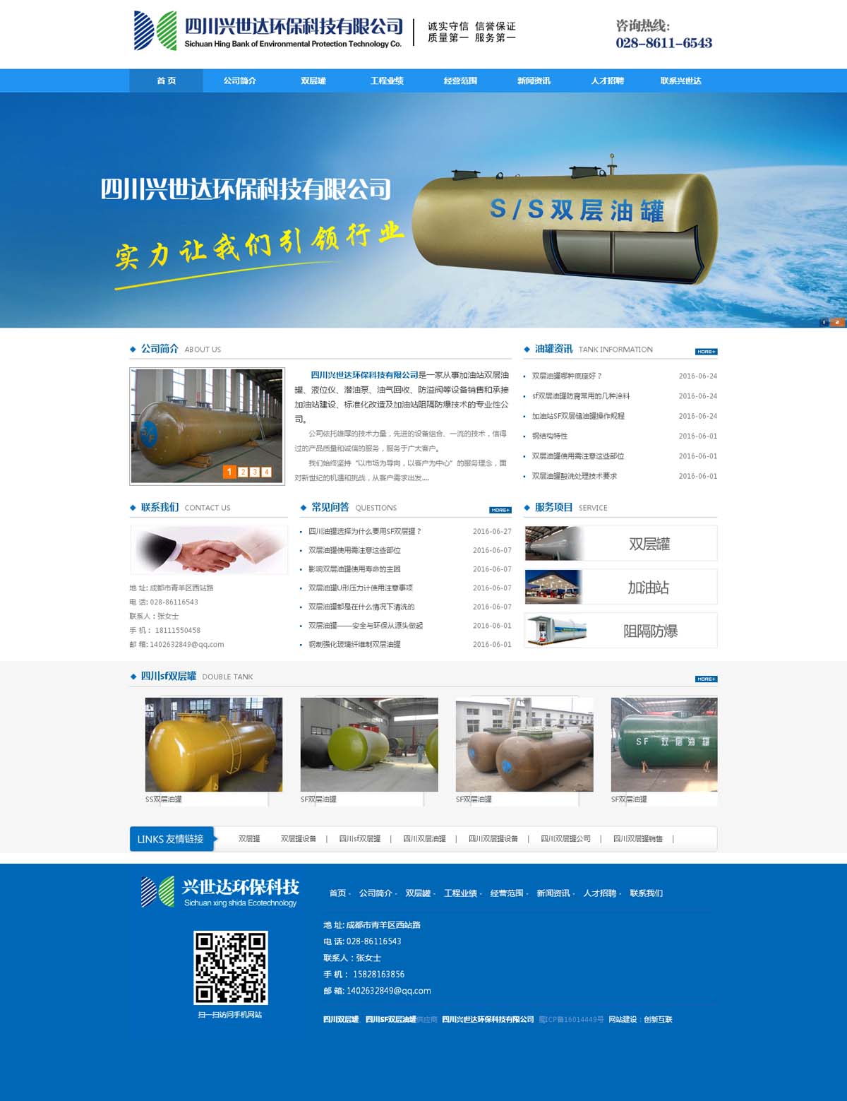 四川兴世达环保科技有限公司是一家从事加油站双层油罐、液位仪、潜油泵、防溢阀等设备销售和承接加油站建设、标准化改造及加油站阻隔防爆技术的专业性公司。公司依托雄厚的技术力量,先进的设备组合、一流的技术,信得过的产品质量和诚信的服务,服务于广大客户。
