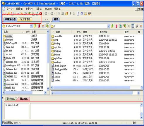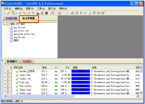 1. 启动CuteFtp 8.0,点击“站点管理器”选项卡