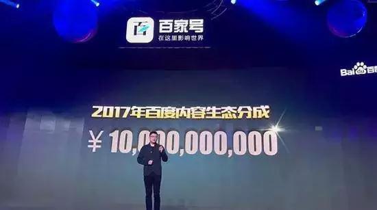 为了鼓励内容创业者,百家号给予了作者高达100亿的分成,据徐继业介绍,百家号已有多位作者收入超过1万元,帮助运营者实现“写作致富”。